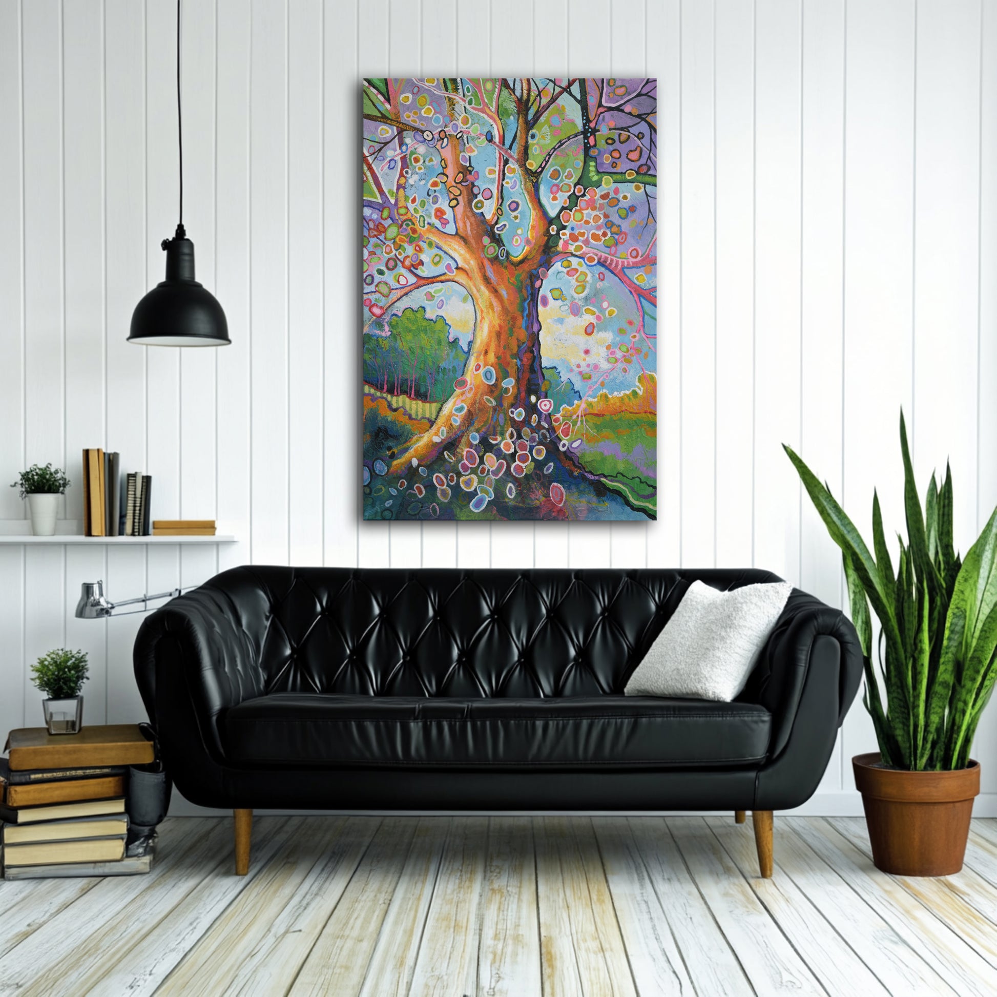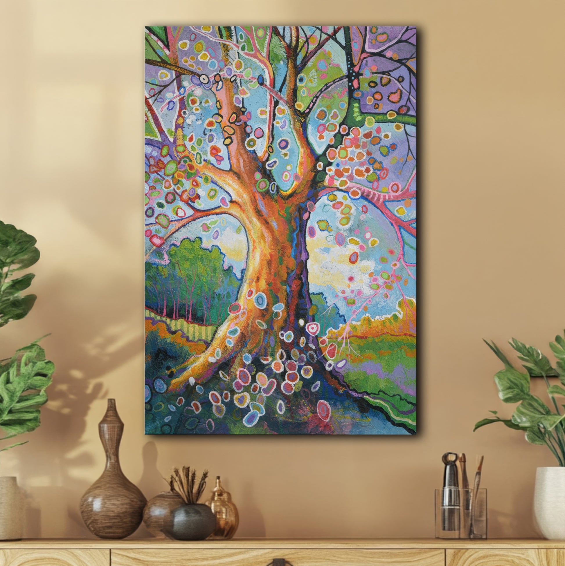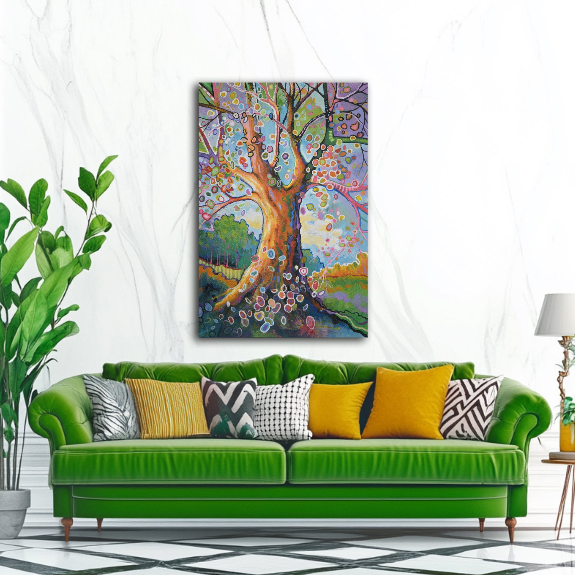 The overall feeling is one of joy and vitality. It’s not just a depiction of a tree, but an expression of growth, renewal, and creative spirit. The bright palette and modern abstraction invite you to feel the world as much as see it, to sense the rush of color and the spark of life that exists in every living thing.