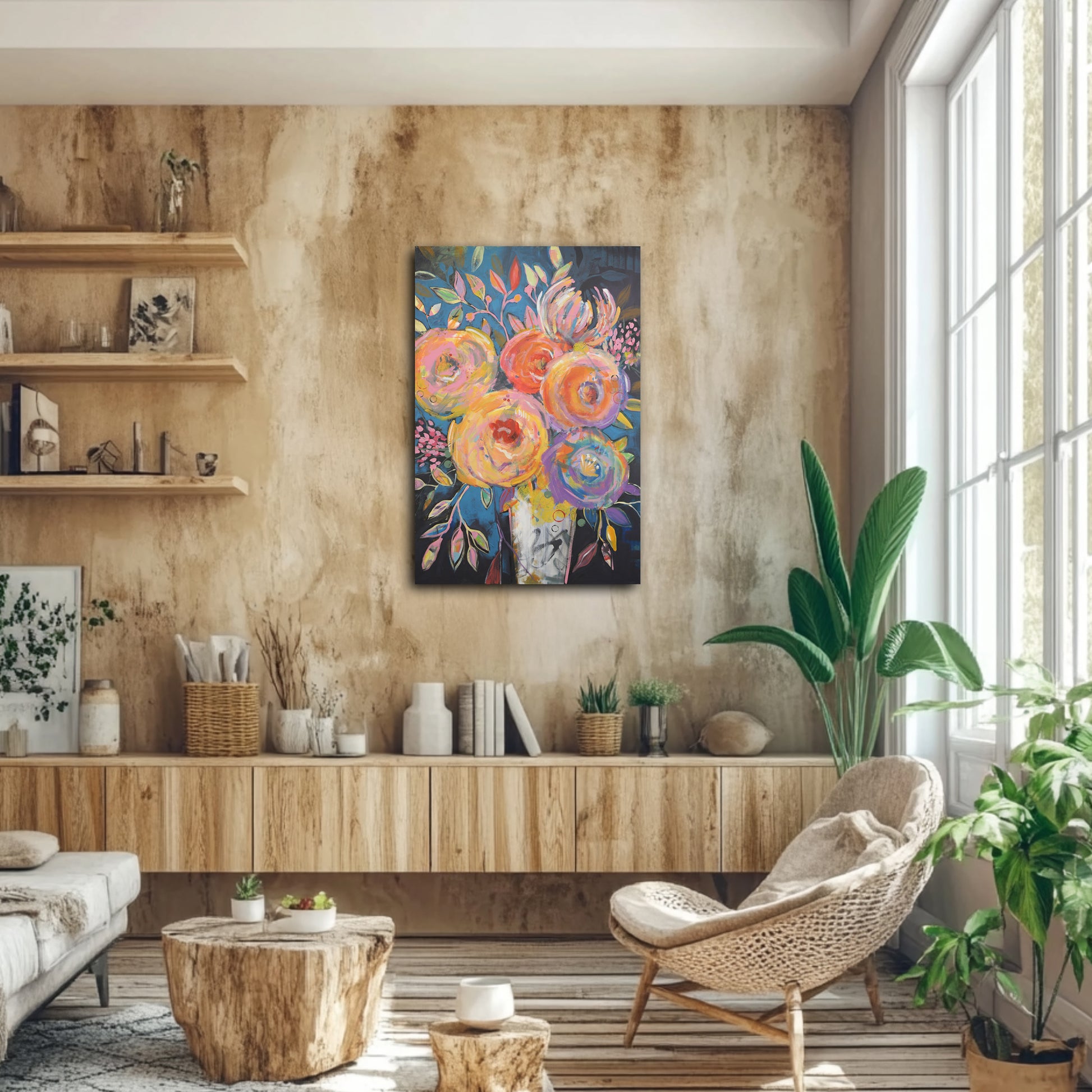 More than just a vase of flowers, this piece is an invitation to pause and appreciate the small wonders that surround us. It brings a feeling of freshness, calm, and effortless beauty, perfect for adding a sense of warmth and light to any space.