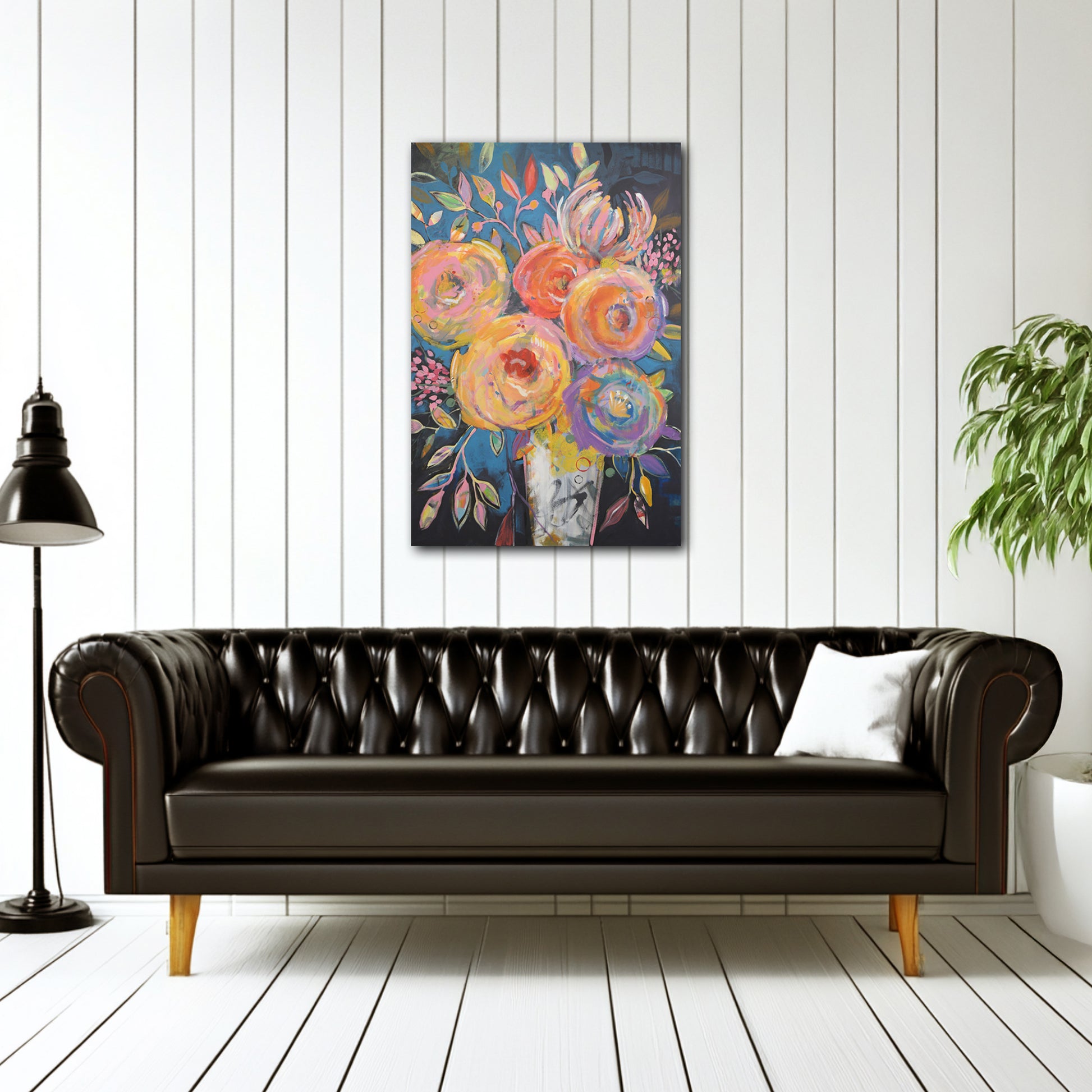 This painting captures the timeless beauty of summer blooms arranged in a simple vase — a celebration of the seasons, color, and natural elegance. I've painted each bloom with care, highlighting the delicate textures, graceful lines, and quiet charm that fresh flowers bring into a room.
