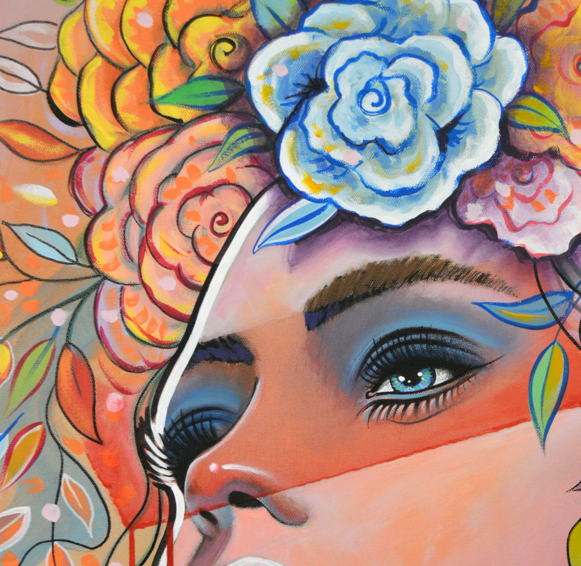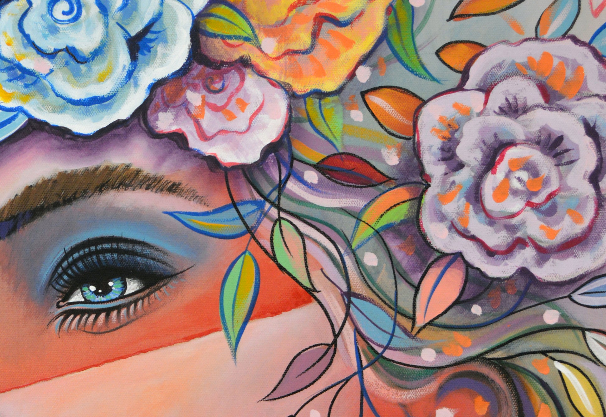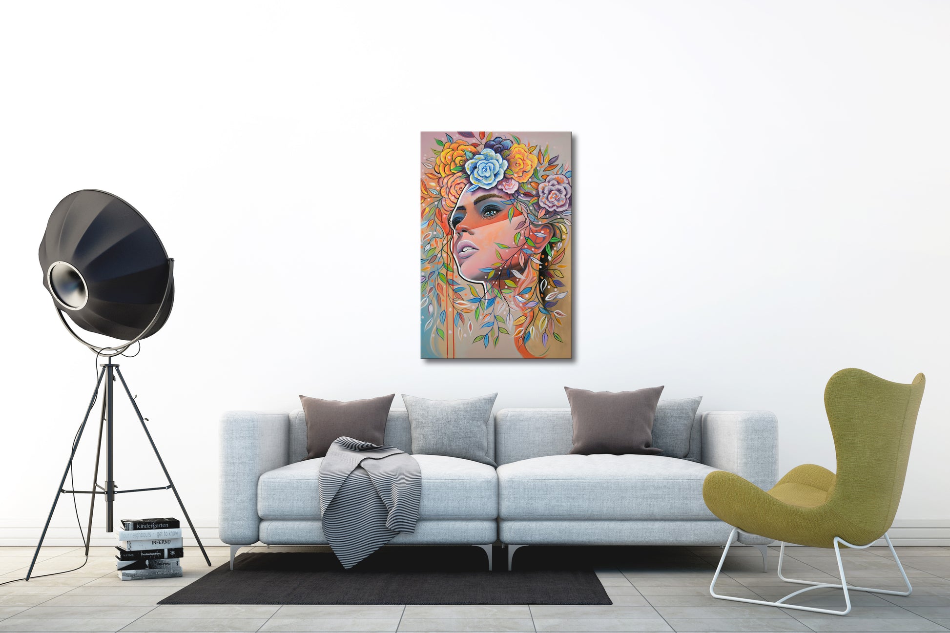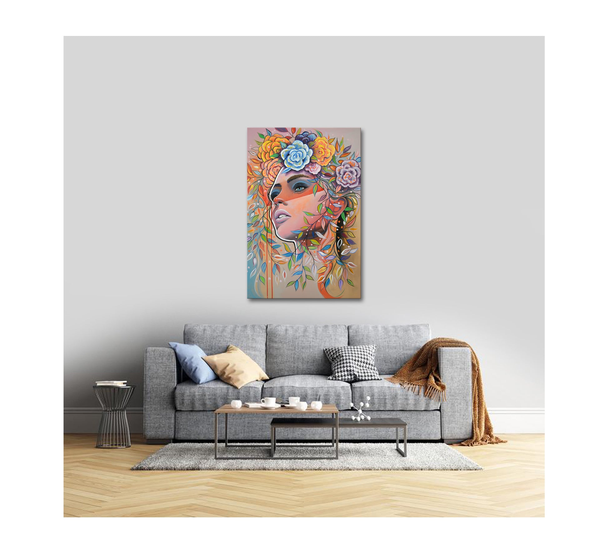 Flowers are often seen as delicate, but their symbolism runs deep — they grow through darkness, reach for the light, and bloom on their own terms. In this painting, the flowers surrounding the woman’s face reflect quiet strength, resilience, and the beauty that comes from growth through adversity.