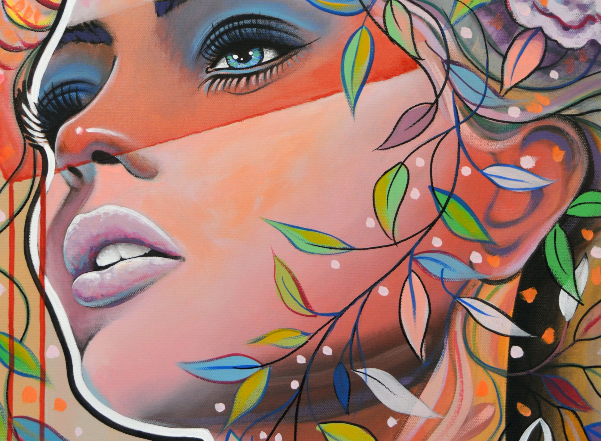 Medium: Professional grade acrylics on gallery-wrapped 100% cotton canvas over wooden stretcher bars (staples are on back, not on sides). I hope you find meaning in this piece as I do, and I hope you enjoy her as much I enjoyed creating her! The sides are painted, so there's no need to frame it. I’ve finished it off with a coat of clear gloss to add shine and protect your investment.