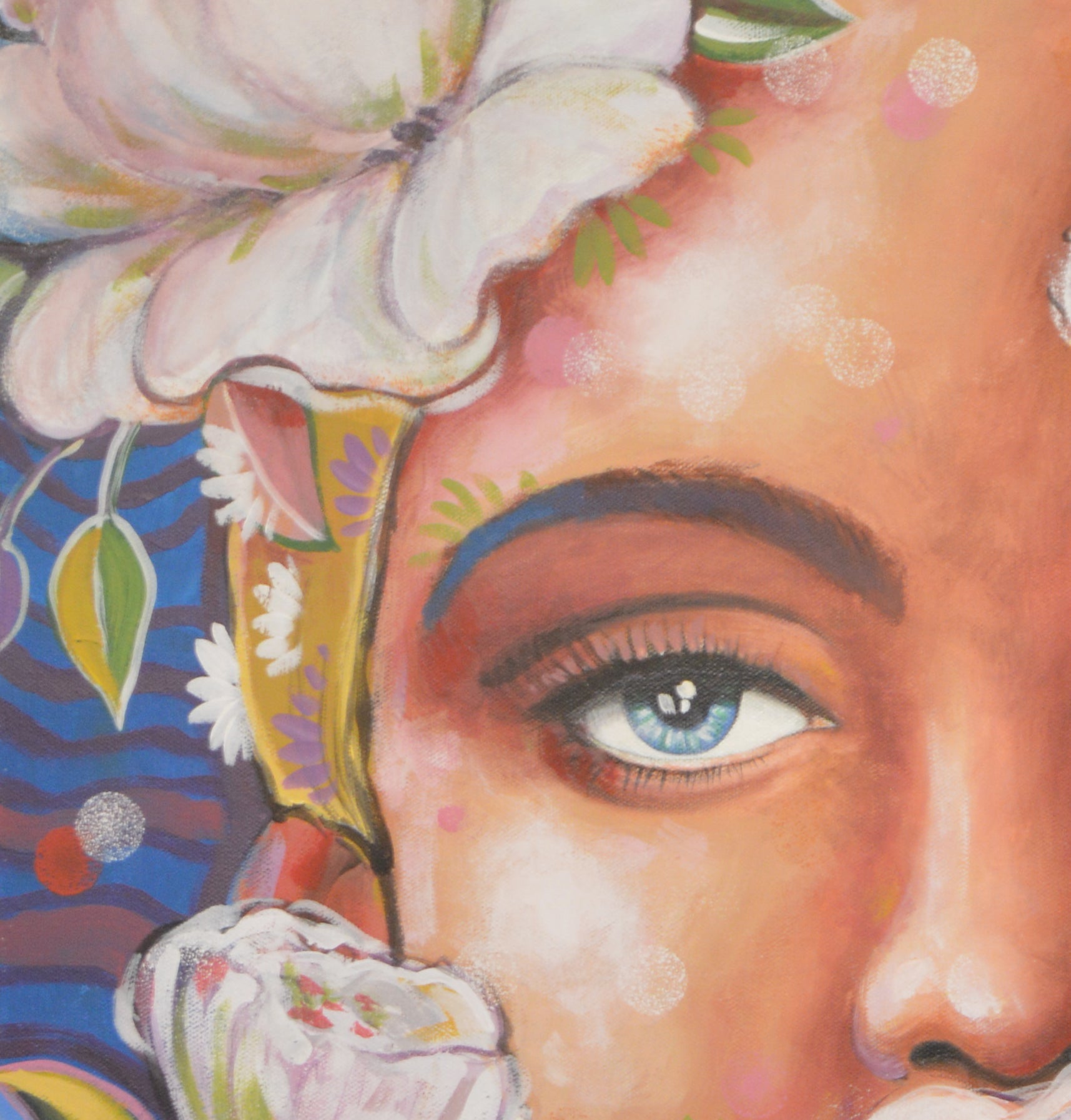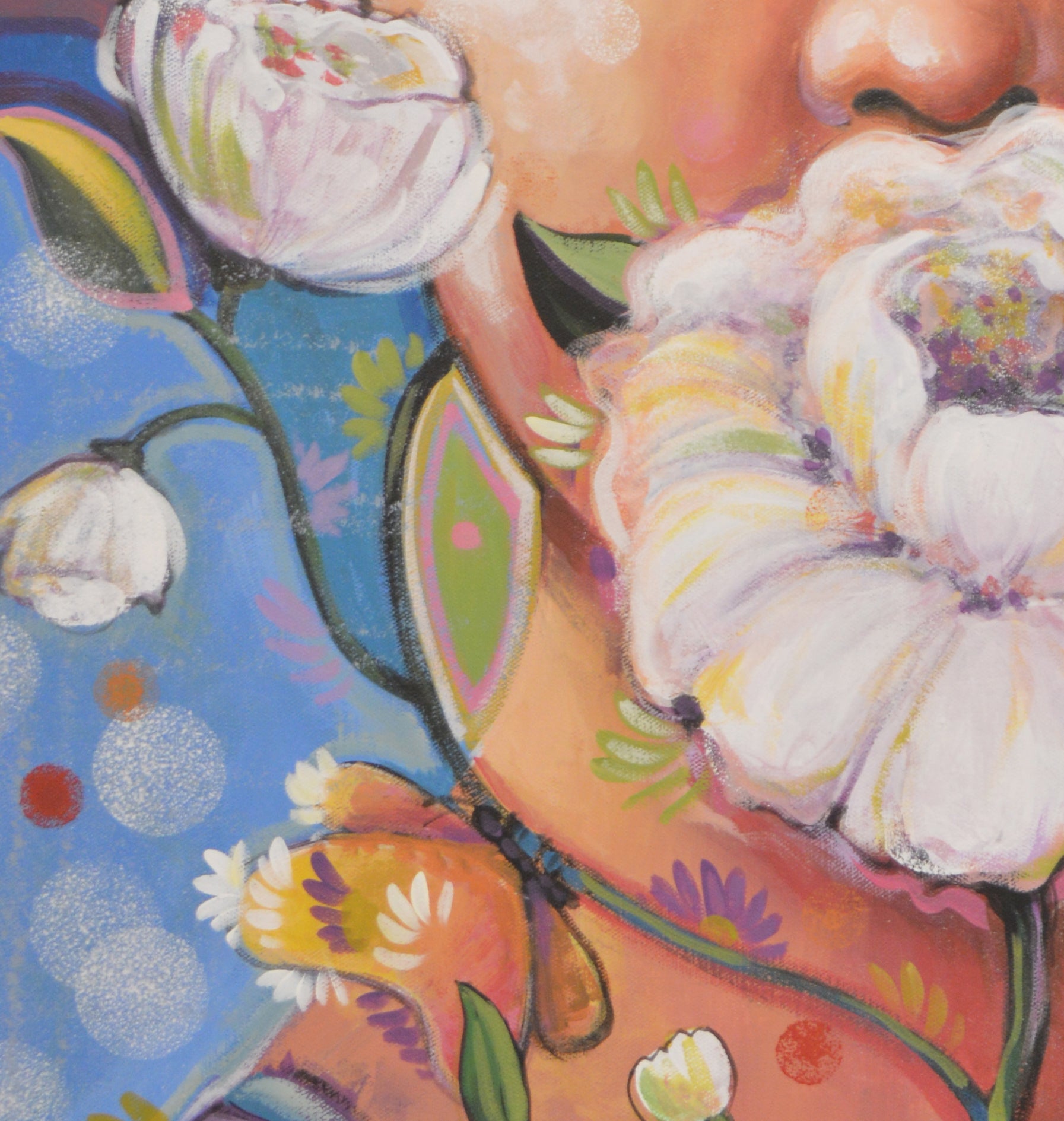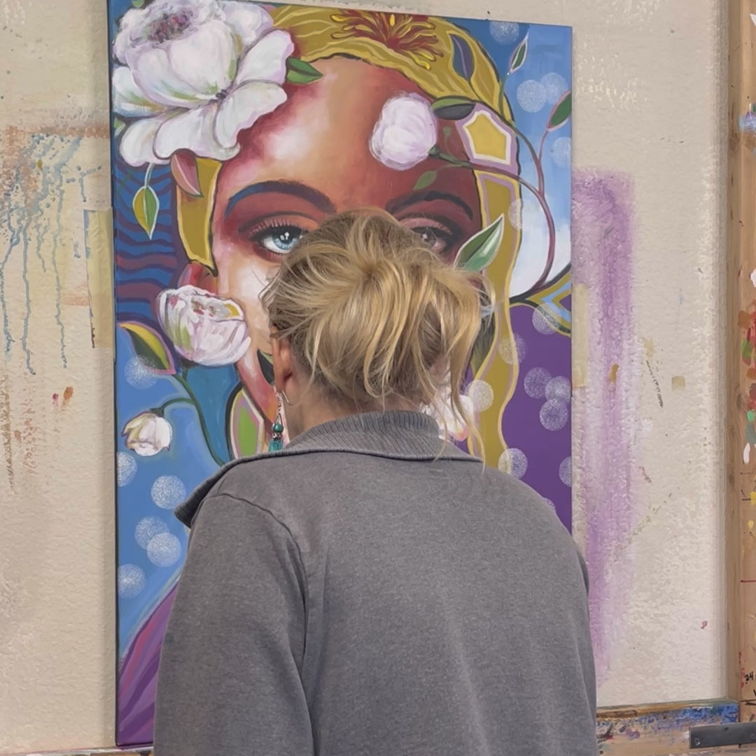 Flowers are often seen as delicate, but their symbolism runs deep — they grow through darkness, reach for the light, and bloom on their own terms. In this painting, the flowers surrounding the woman’s face reflect quiet strength, resilience, and the beauty that comes from growth through adversity.