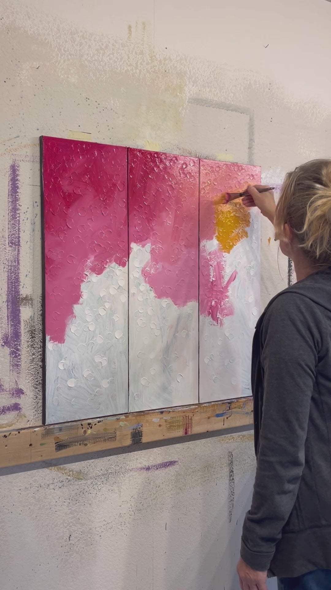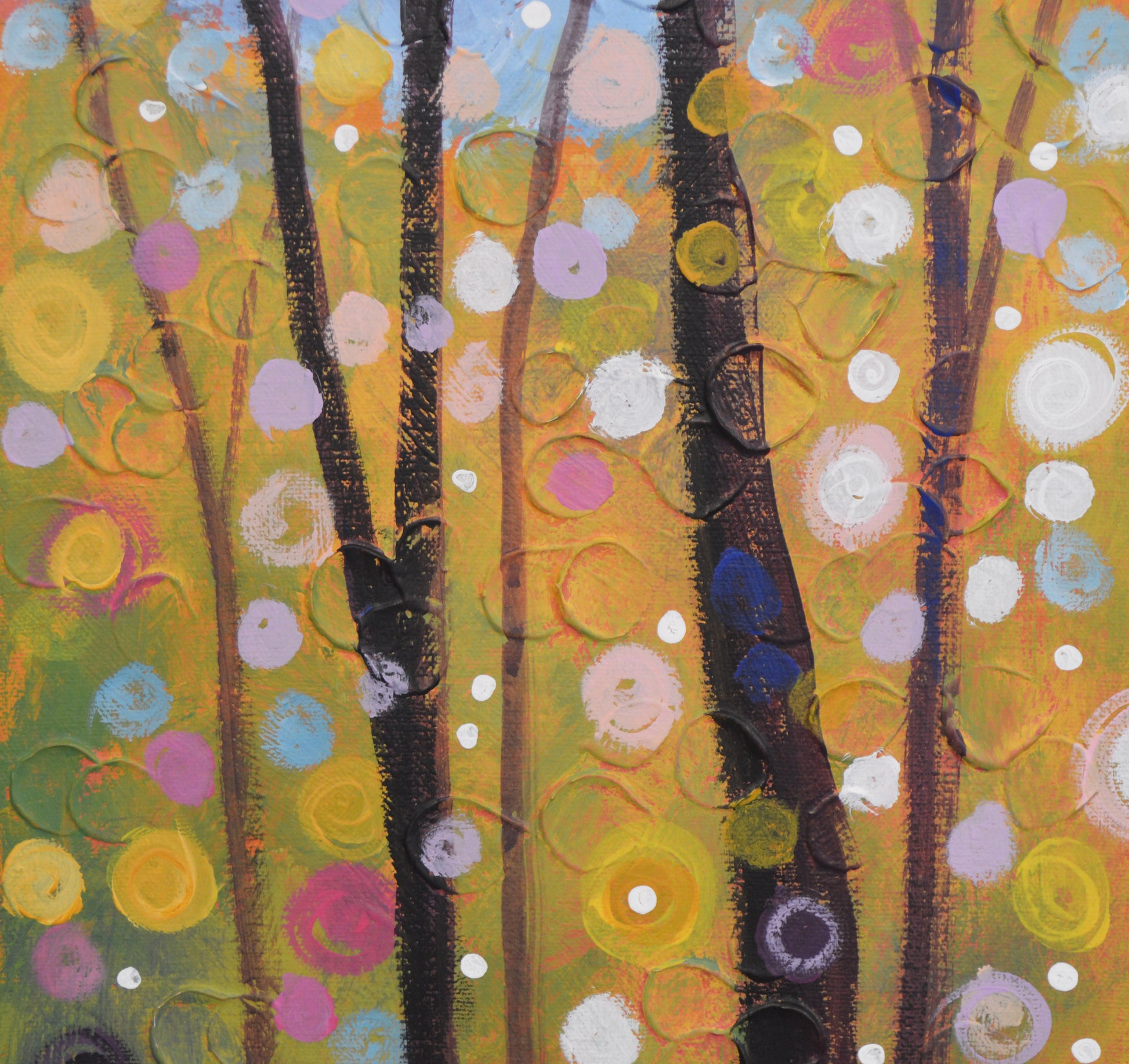 Medium........Professional grade acrylics on gallery-wrapped 100% cotton canvas over wooden stretcher bars (staples are on back, not on sides). This piece has lots of deep texture on it, making it special because it's touchable and unique. the texture can be seen in the close-ups. The sides are painted, so there's no need to frame it. It is sold not framed. I’ve finished it off with a coat of clear gloss to add shine and protect your investment.