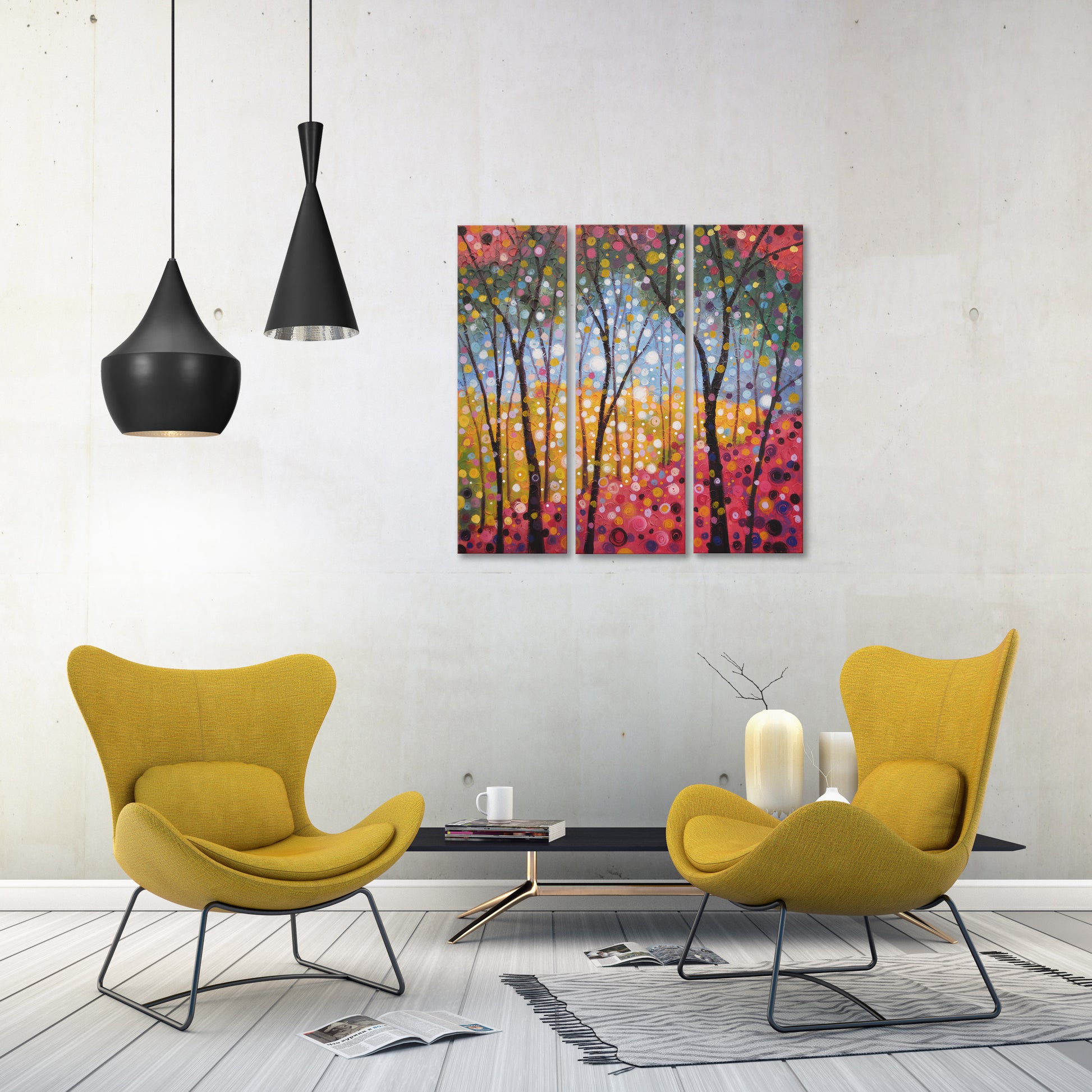 Size: 30" x 30" x .75" deep. You are buying all 3 canvases, each one is 10" wide x 30" tall.