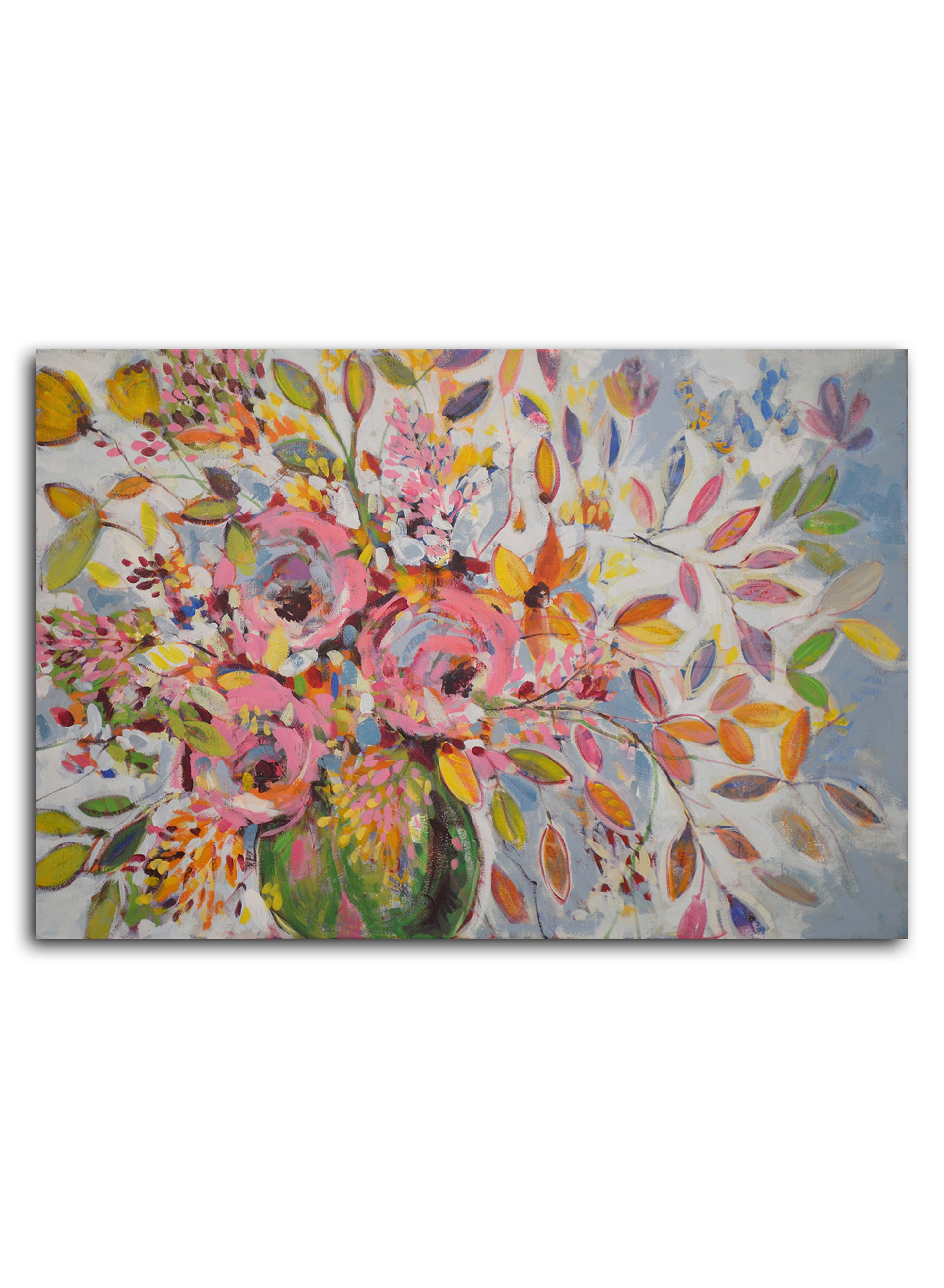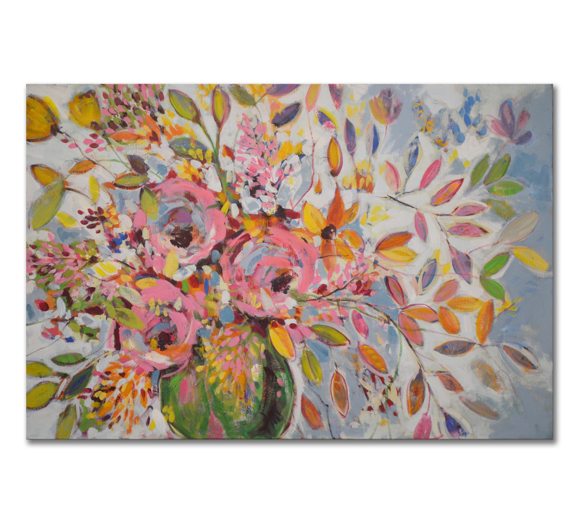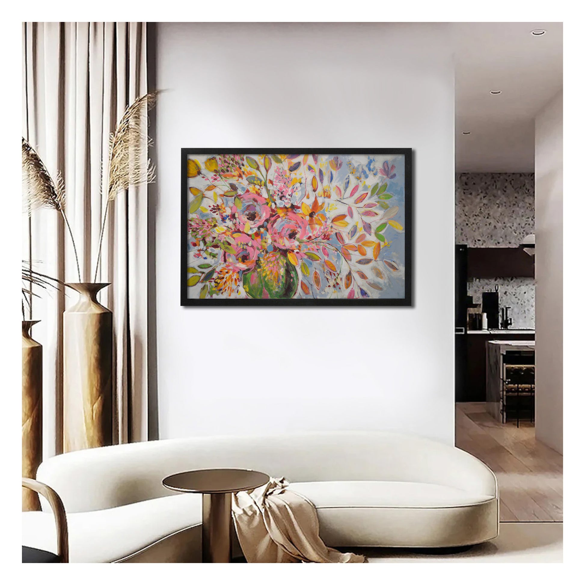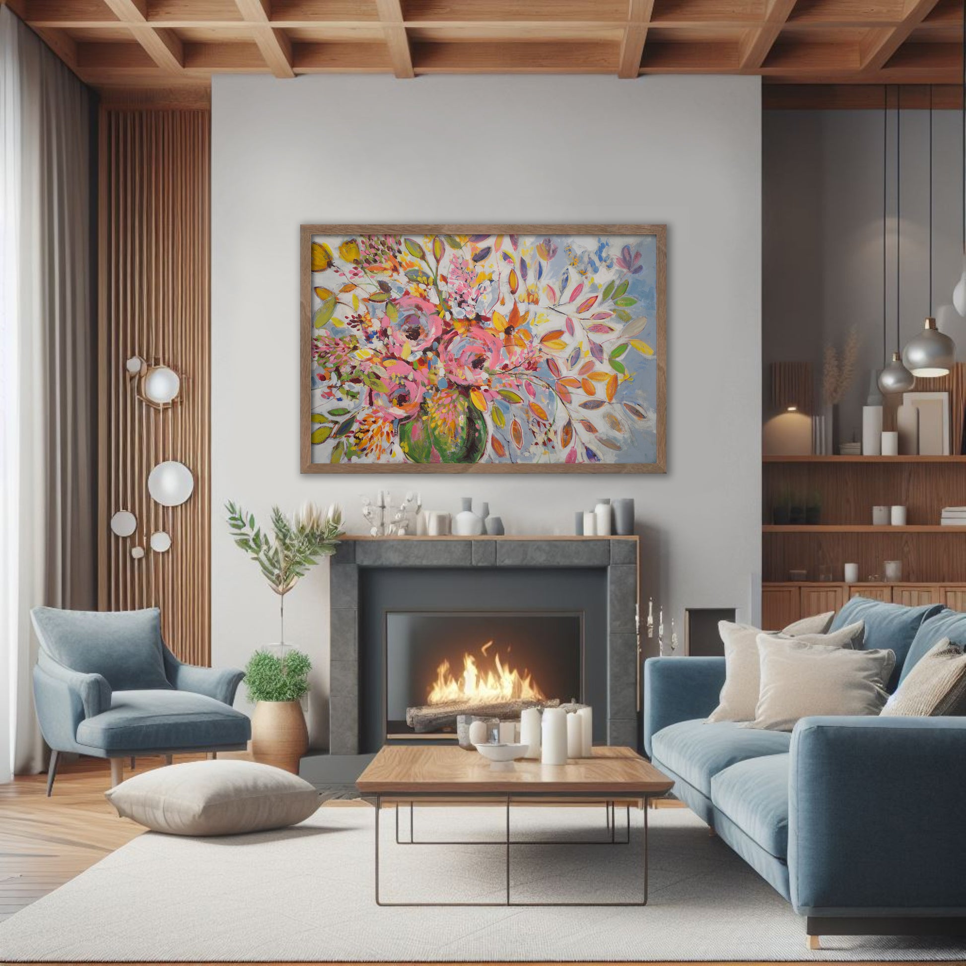This painting captures the timeless beauty of flowers arranged in a simple vase — a celebration of color, light, and natural elegance. Each bloom is painted with care, highlighting the delicate textures, graceful lines, and quiet charm that fresh flowers bring into a room.