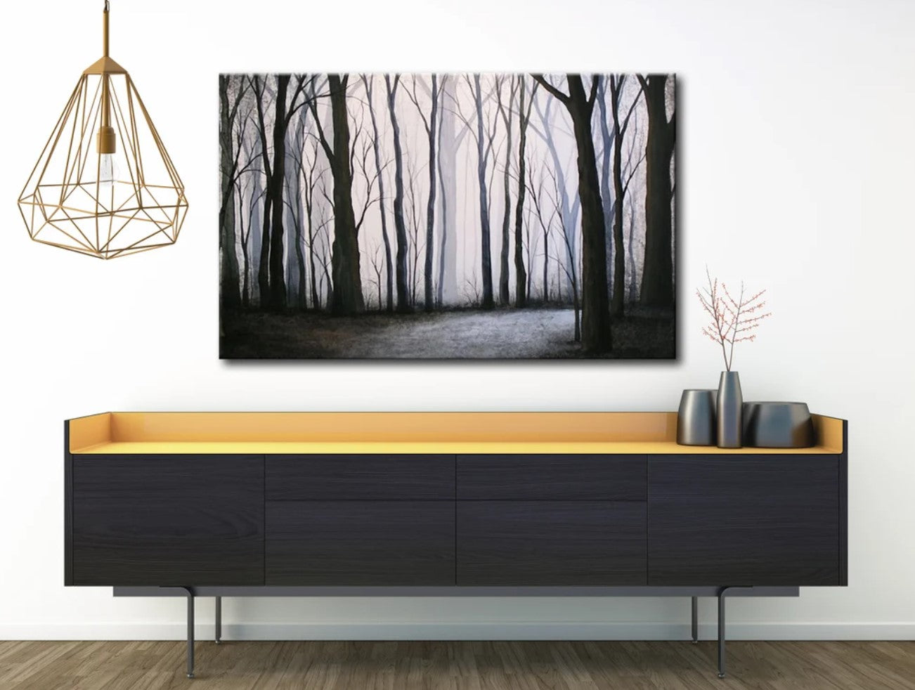 Medium: Professional grade acrylics on gallery-wrapped 100% cotton canvas over wooden stretcher bars (staples are on back, not on sides). The sides are painted, so there's no need to frame it. It is sold not framed. I’ve finished it off with a coat of clear gloss to add shine and protect your investment.