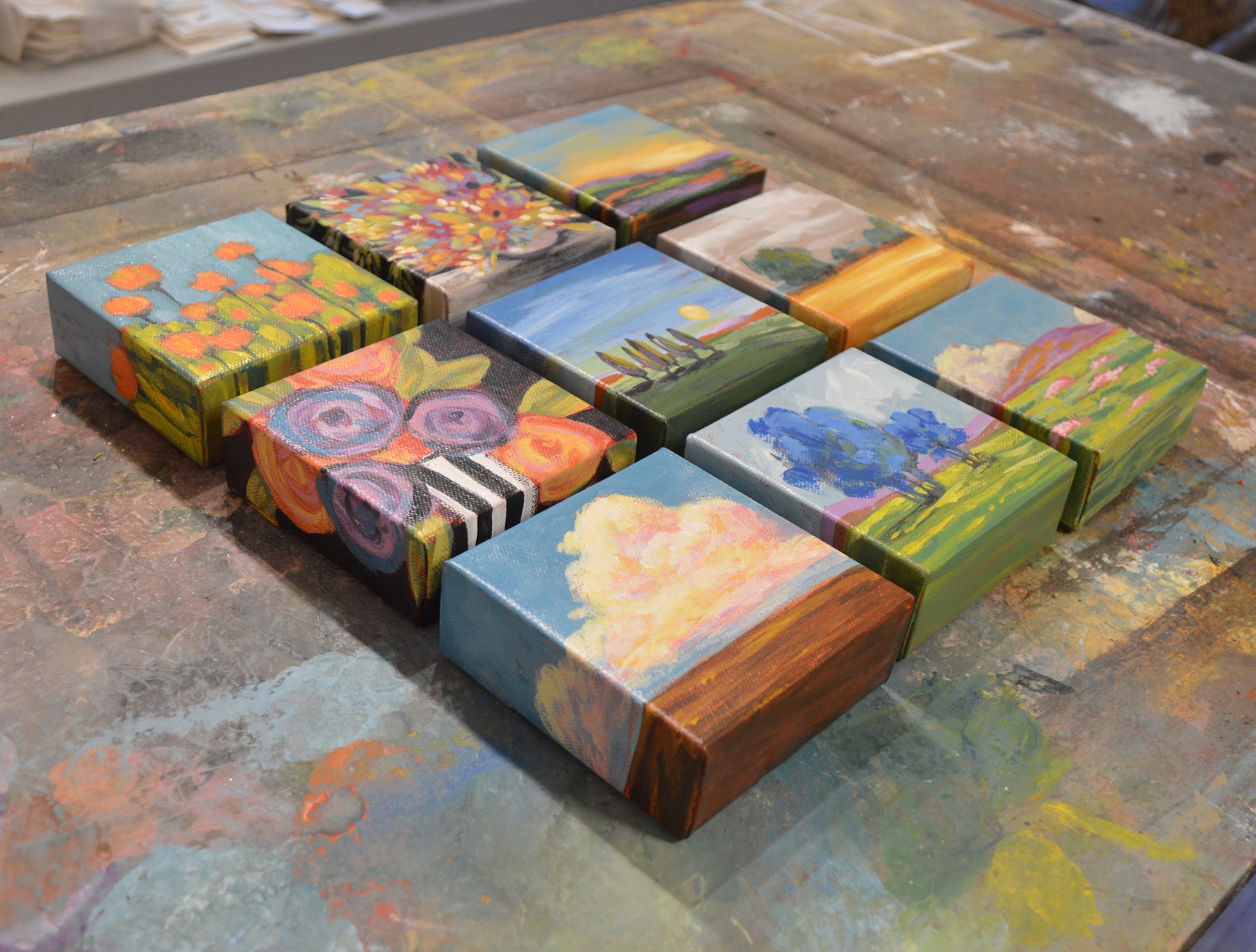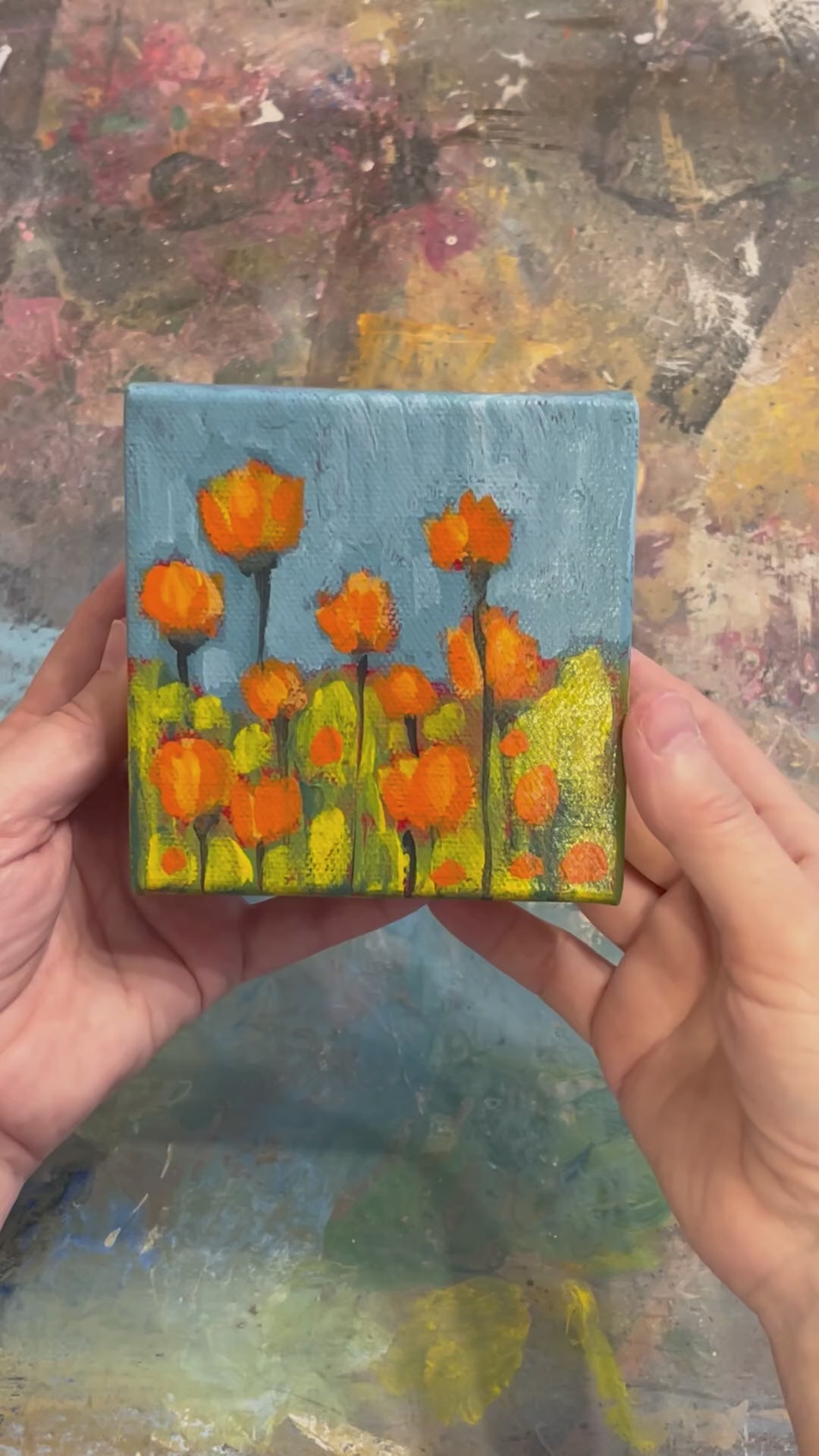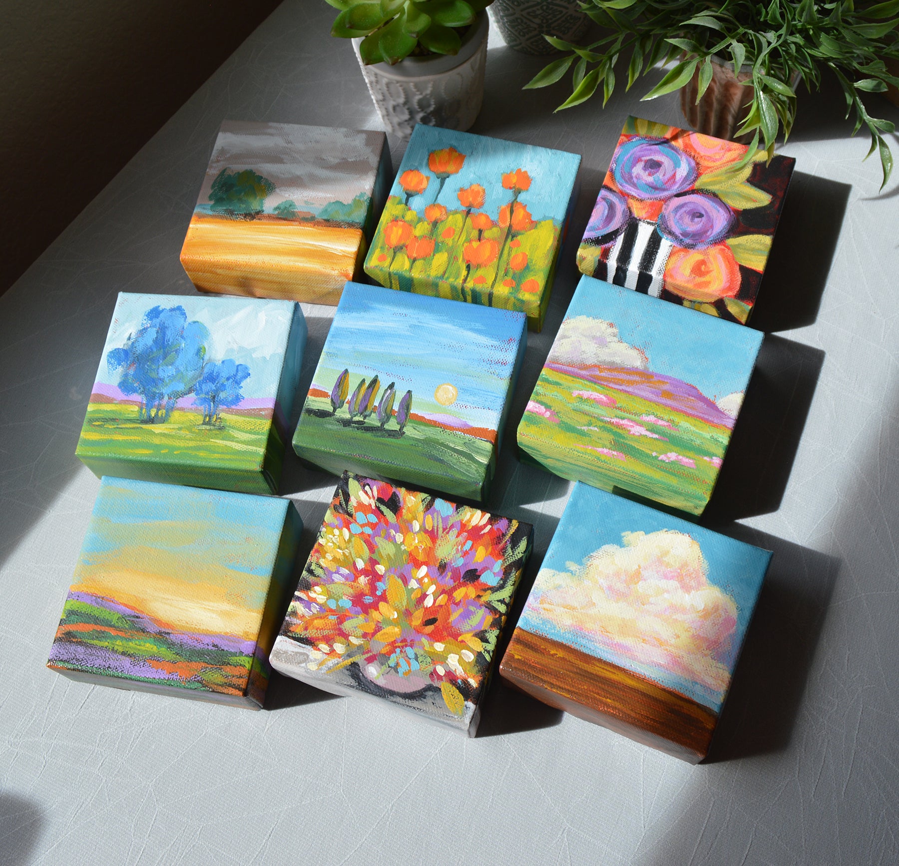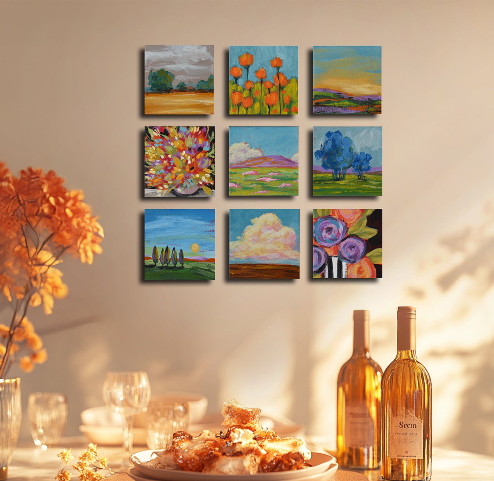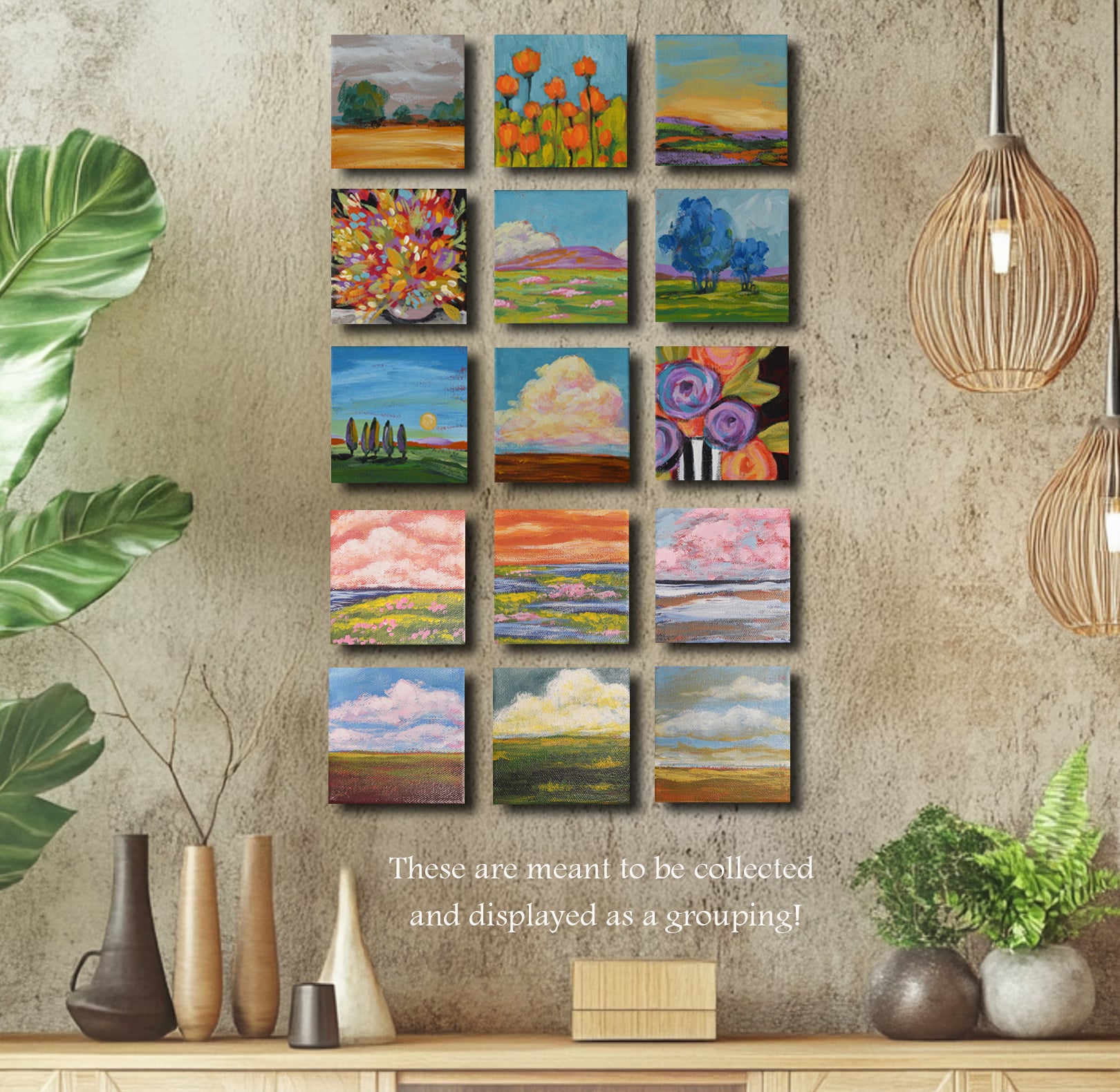Sweet little mini paintings, collect one, or several. These Minis look best when they are displayed in a grouping on your wall, the more the better for maximum impact!
