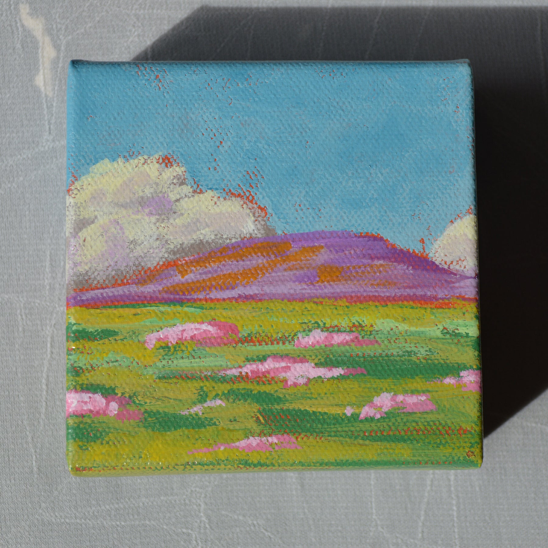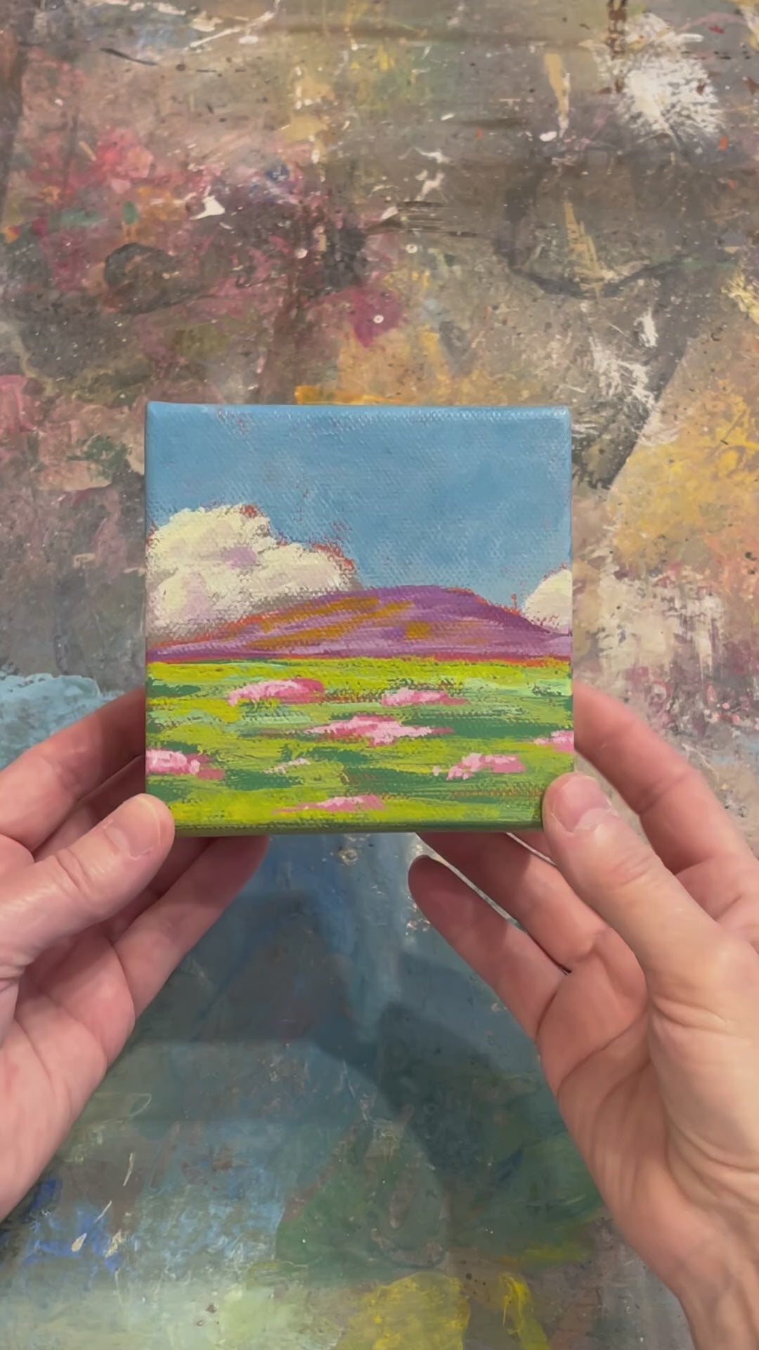 Sweet little mini paintings, collect one, or several. These Minis look best when they are displayed in a grouping on your wall, the more the better for maximum impact!