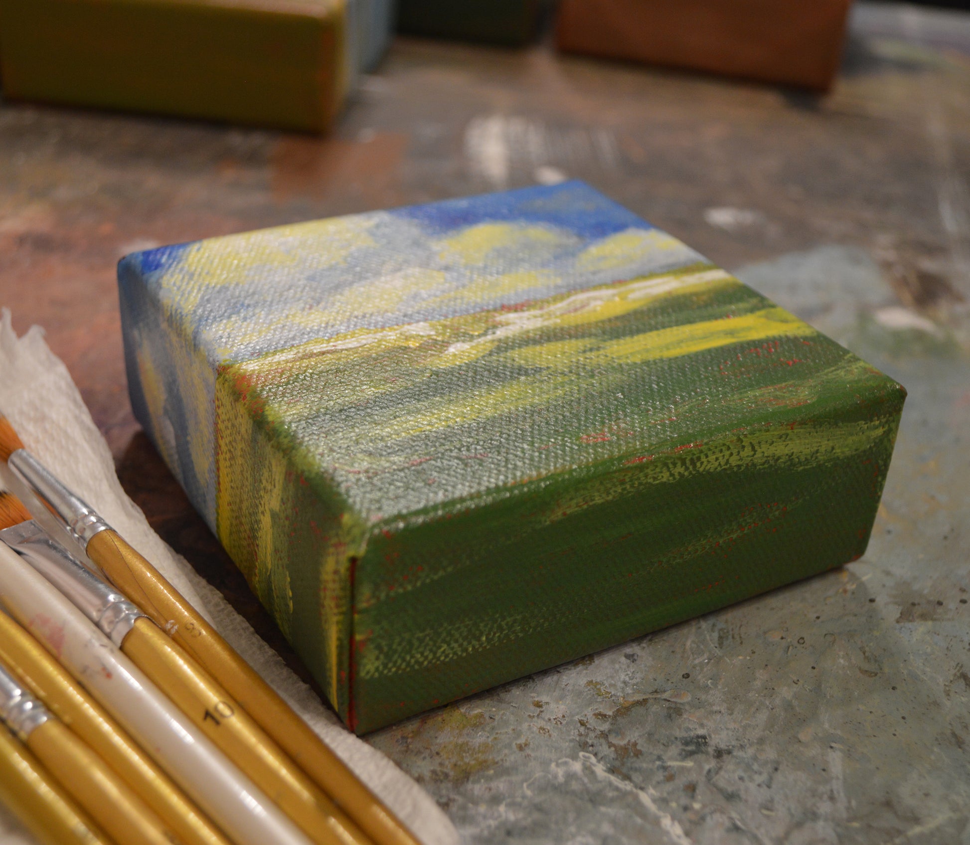 Sweet little mini paintings, collect one, or several. These Minis look best when they are displayed in a grouping on your wall, the more the better for maximum impact!