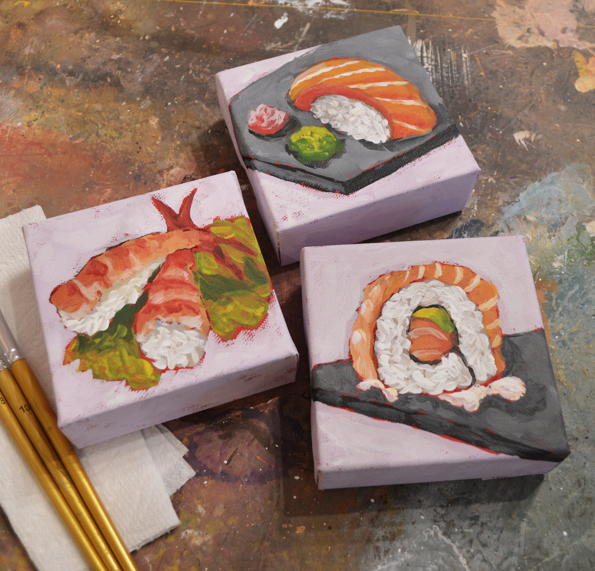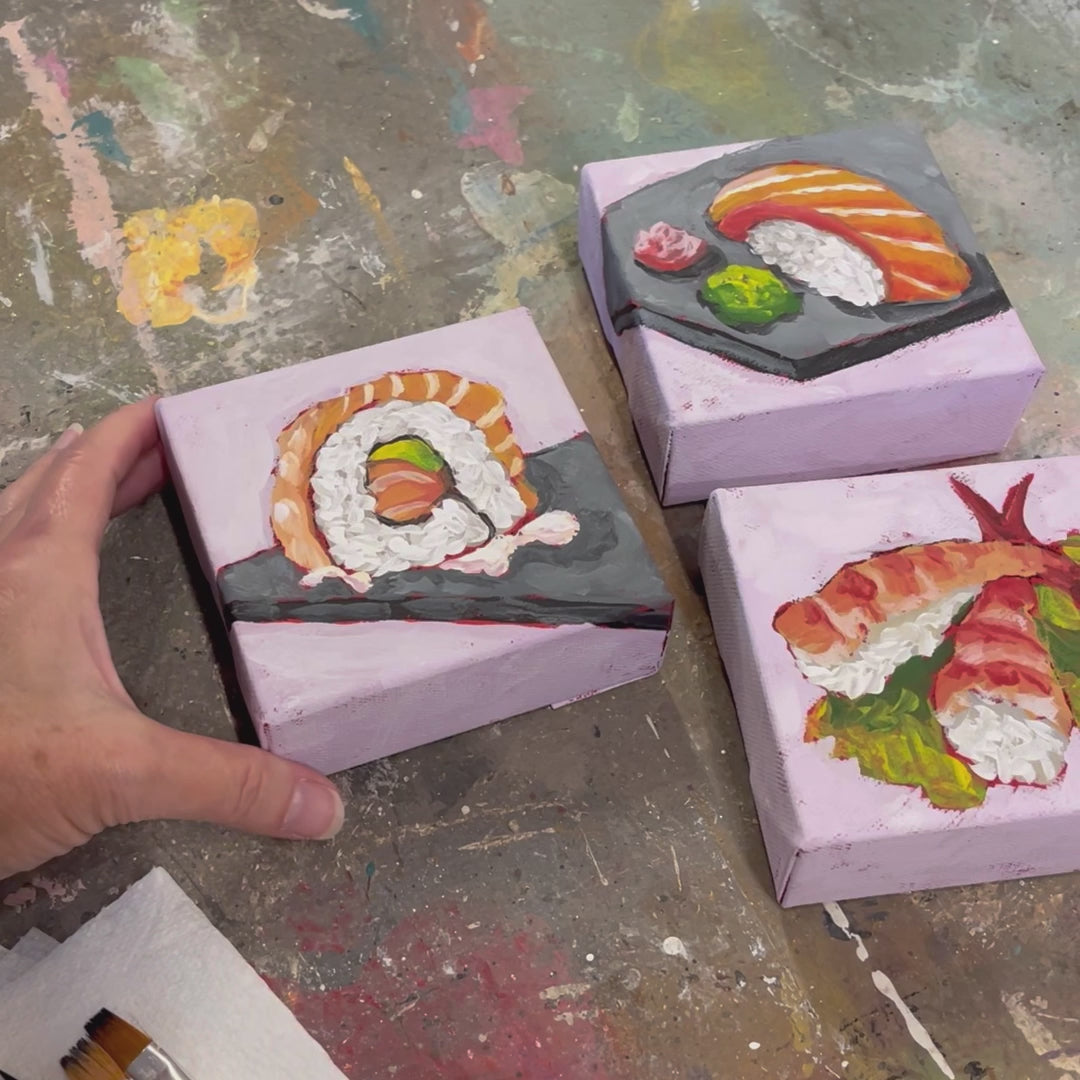 Sweet little mini paintings, collect one, or several. These Minis look best when they are displayed in a grouping on your wall, the more the better for maximum impact!
