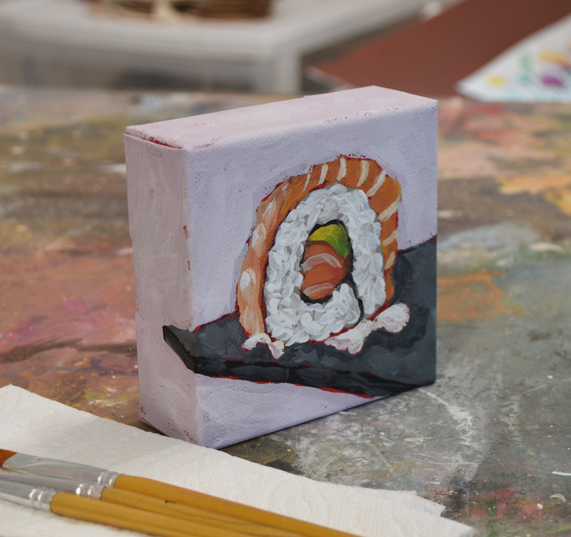 Size: 4" x 4" x 1.5" deep. The painted image goes all around all 4 sides so you can start enjoying the painted image as you approach it from the sides.