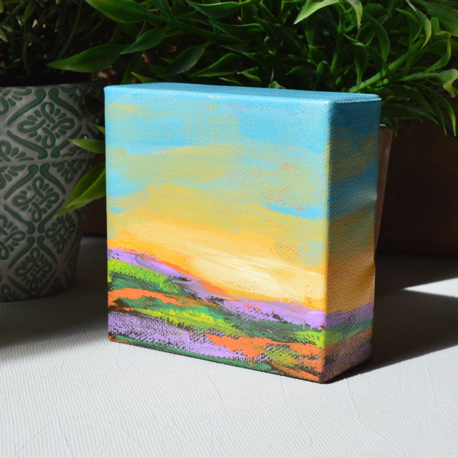 Sweet little mini paintings, collect one, or several. These Minis look best when they are displayed in a grouping on your wall, the more the better for maximum impact!