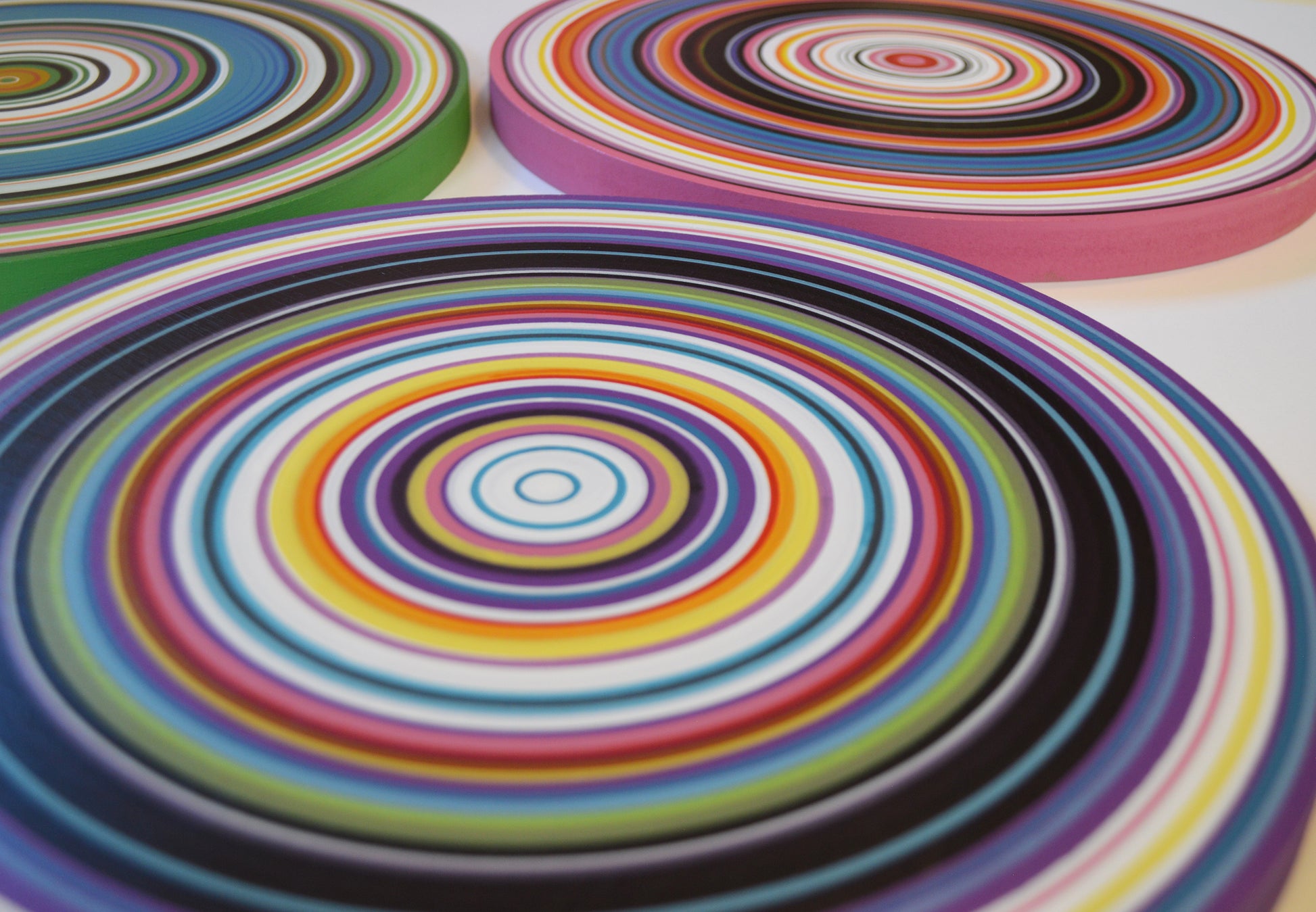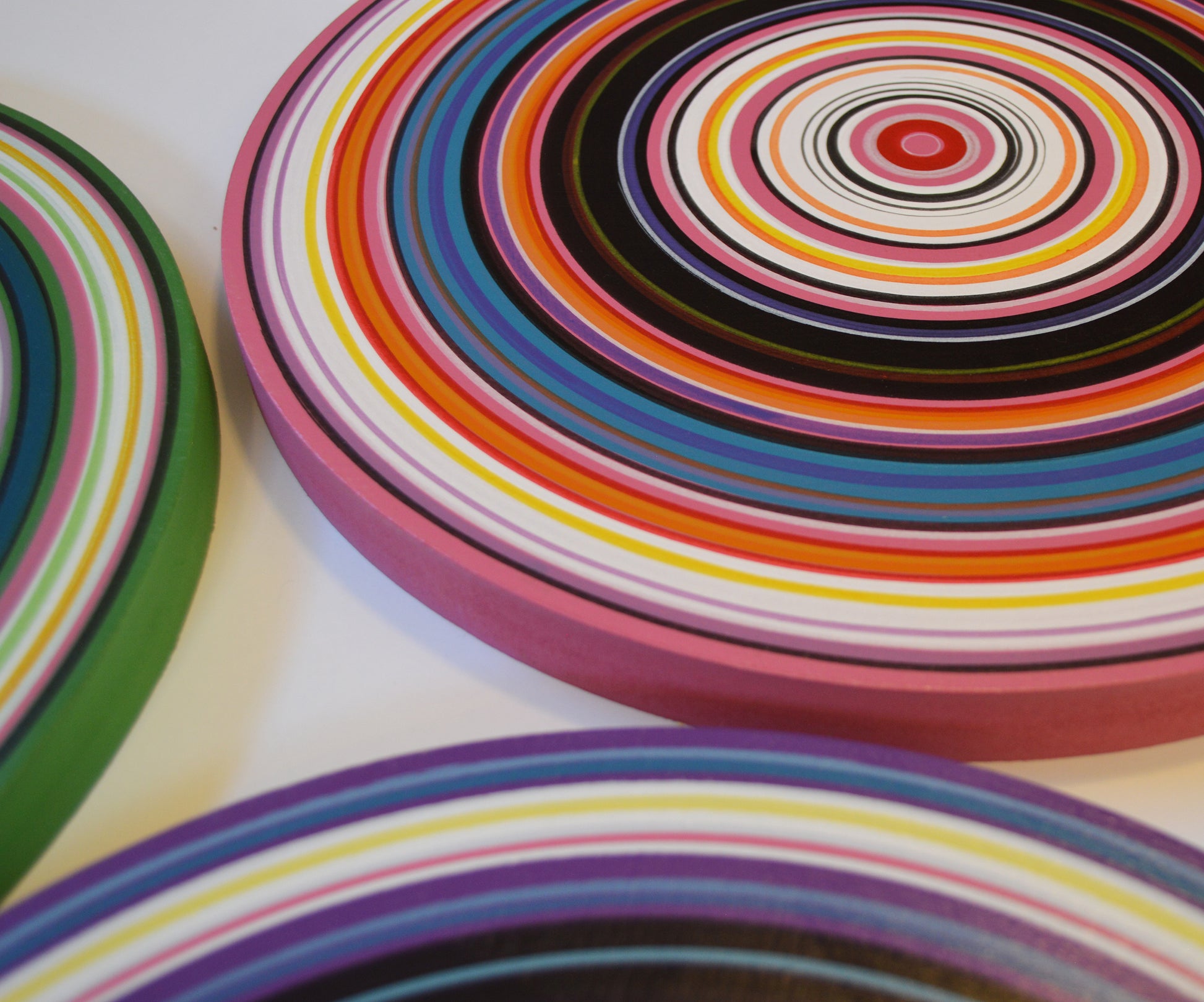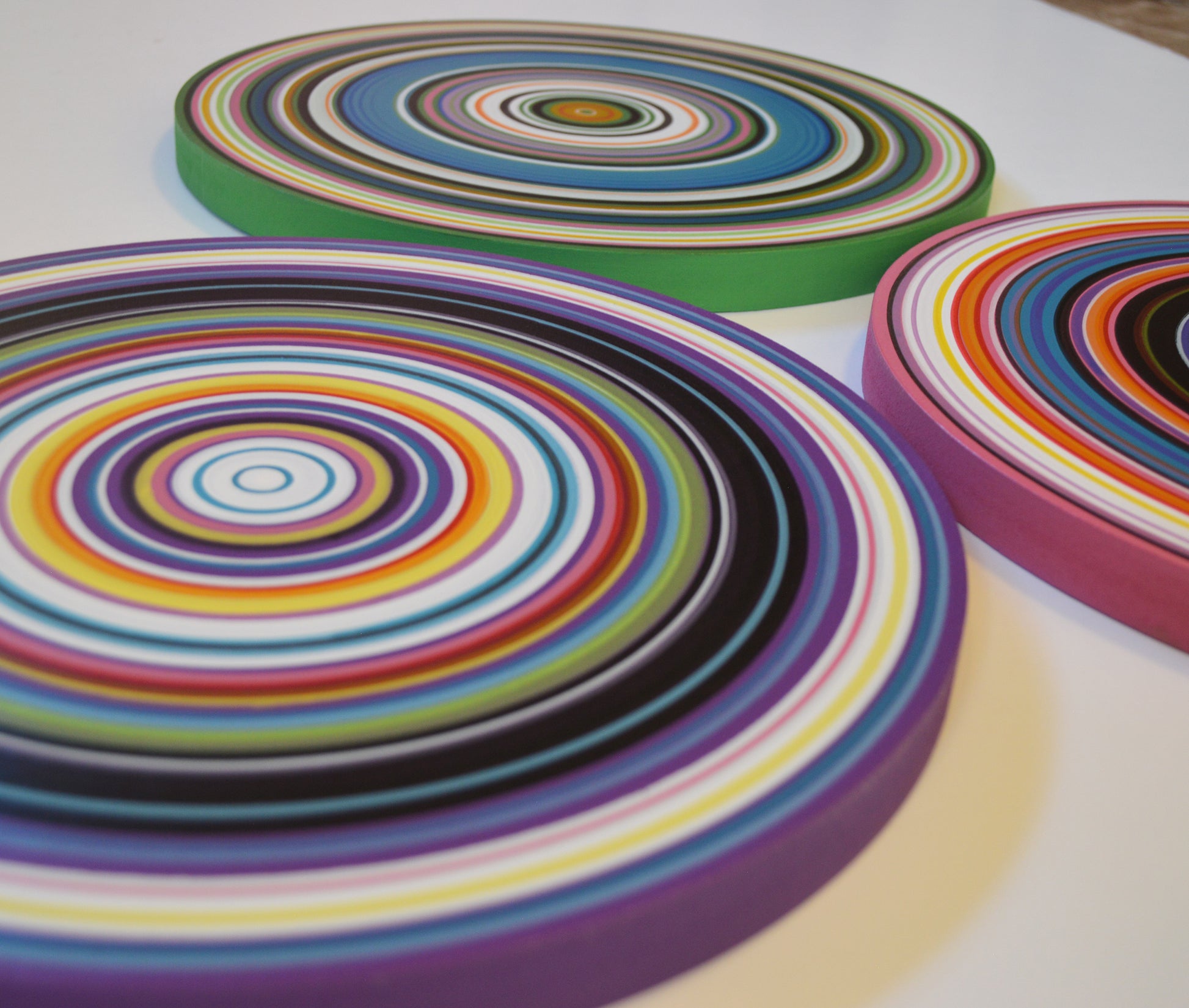 Medium: Professional grade acrylics on 3/4" thick solid MDF circles. Each of these circles is hand painted with a paintbrush and actual paint, these are NOT prints or computerized reproductions of any kind. Please see close-ups! I’ve finished them off with 2 coats of clear gloss to add shine and protect your investment.