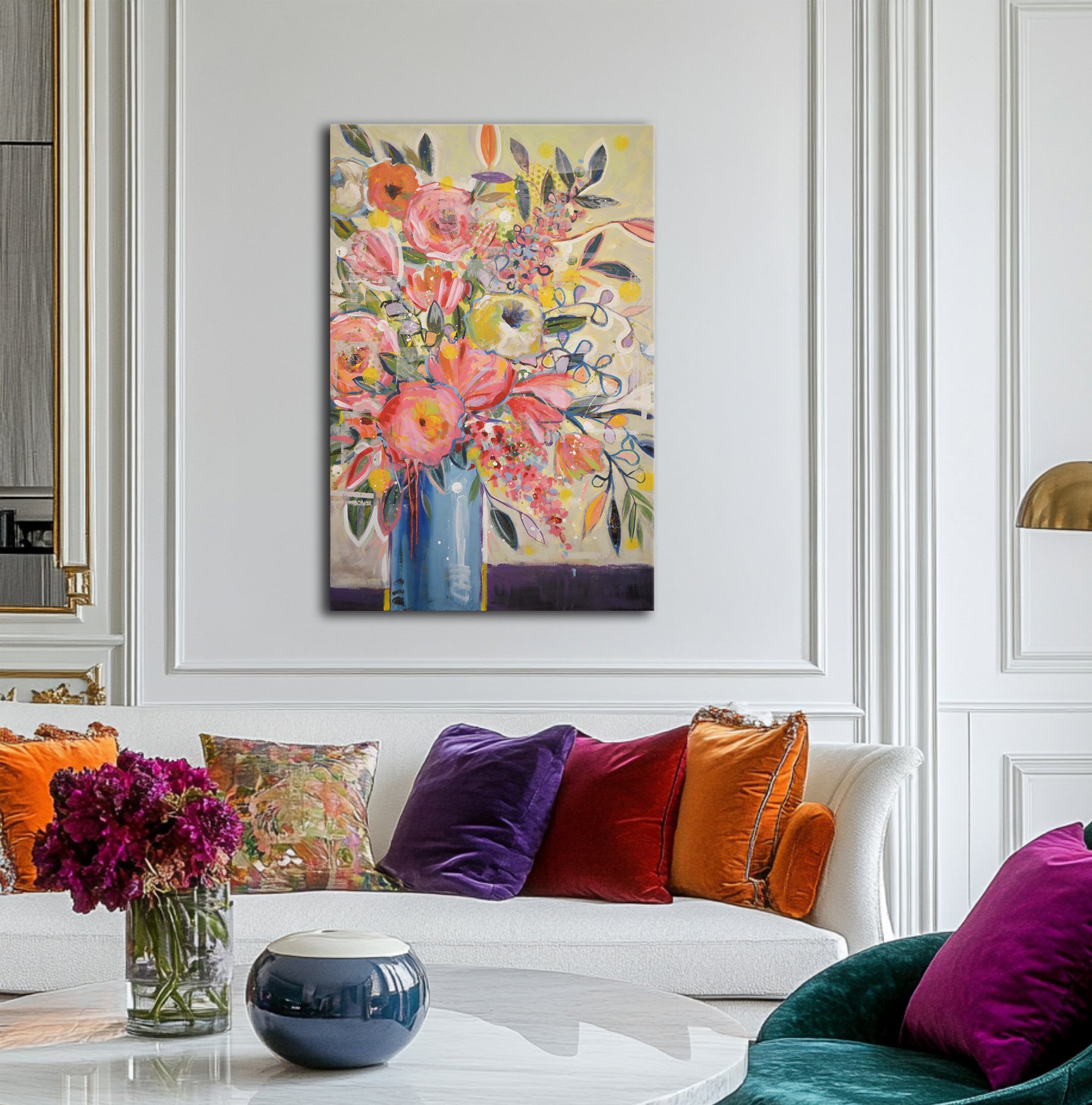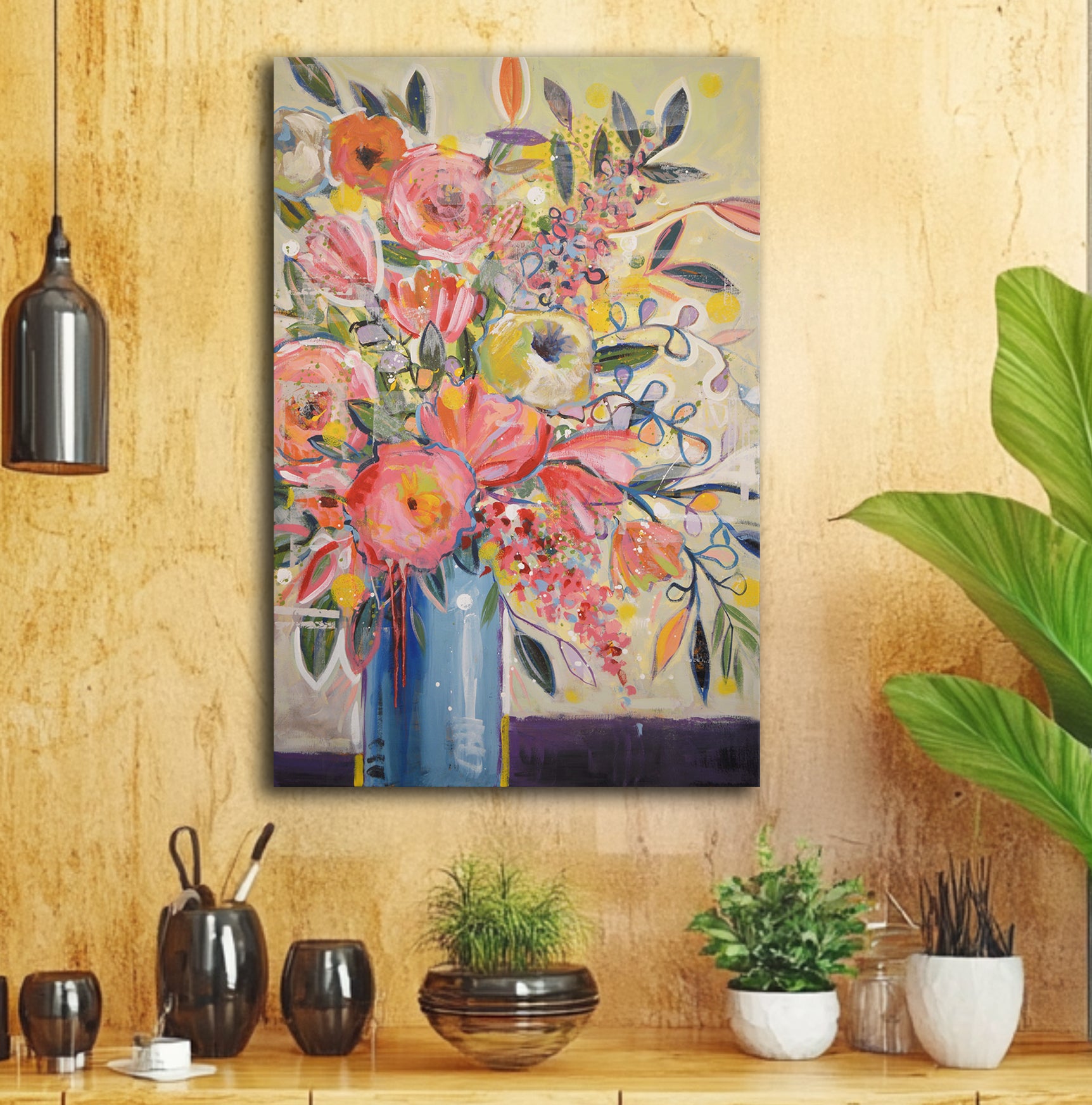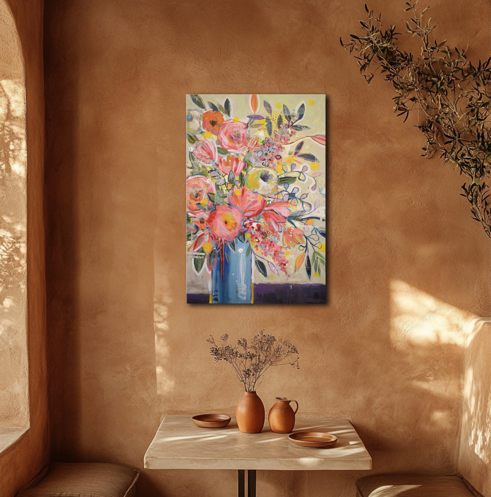 This painting captures the timeless beauty of summer blooms arranged in a simple vase — a celebration of the seasons, color, and natural elegance. I've painted each bloom with care, highlighting the delicate textures, graceful lines, and quiet charm that fresh flowers bring into a room.