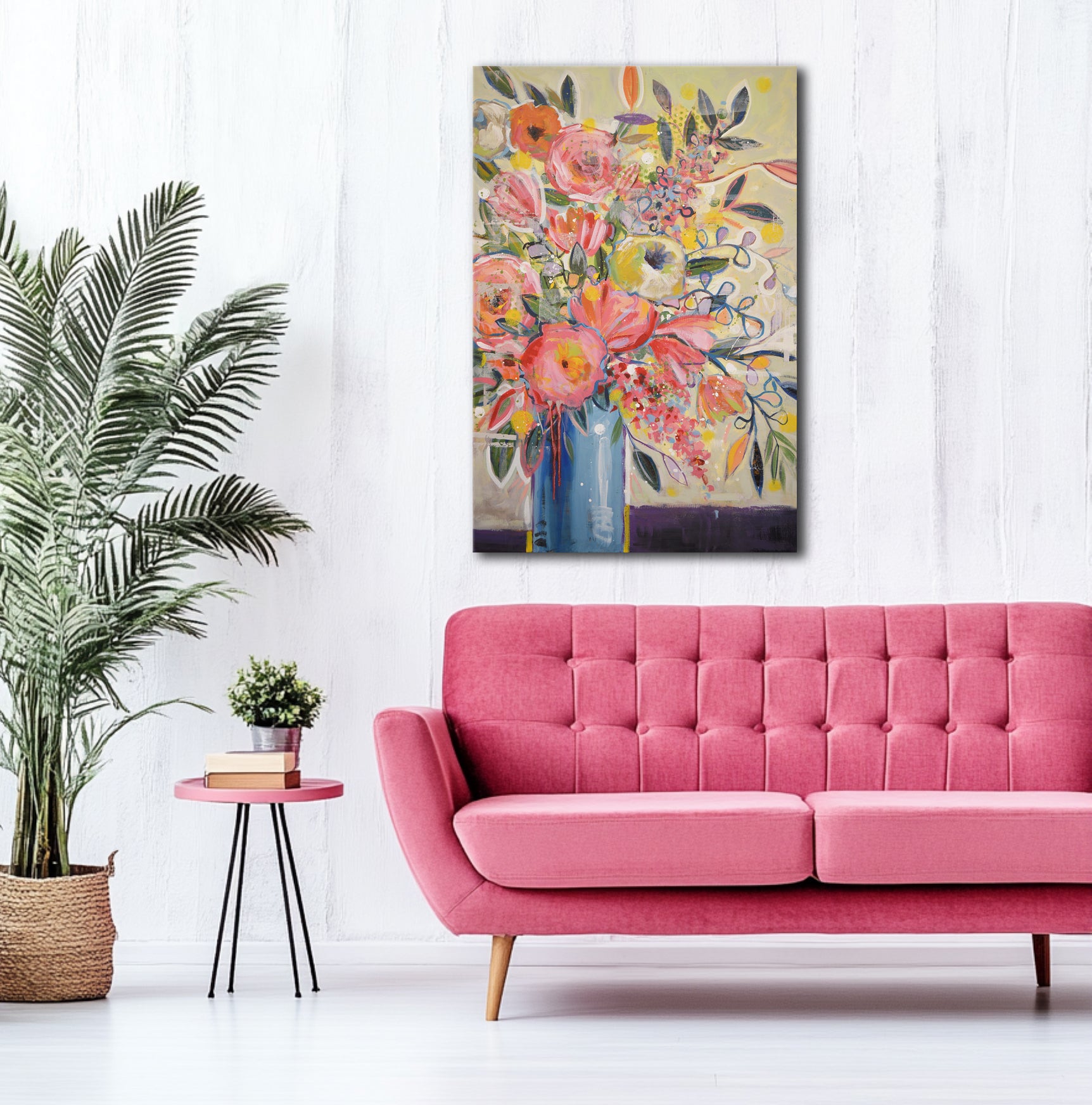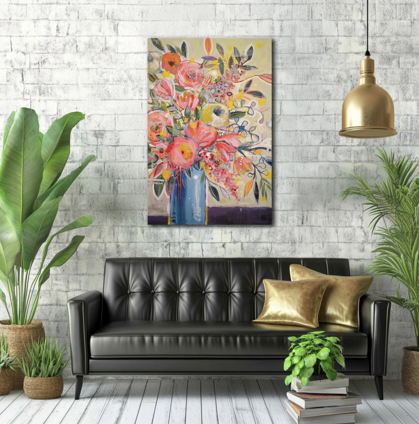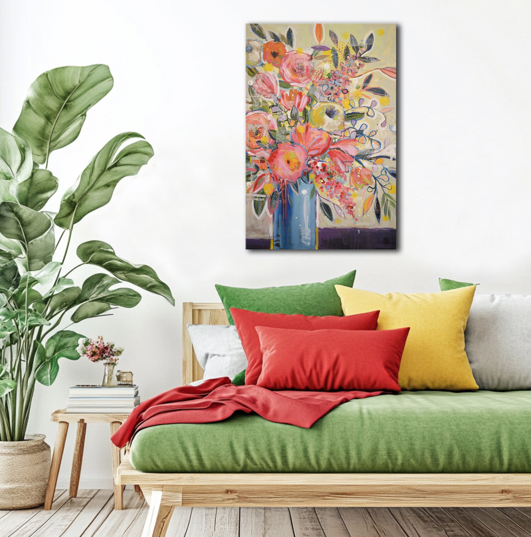 This painting captures the timeless beauty of summer blooms arranged in a simple vase — a celebration of the seasons, color, and natural elegance. I've painted each bloom with care, highlighting the delicate textures, graceful lines, and quiet charm that fresh flowers bring into a room.